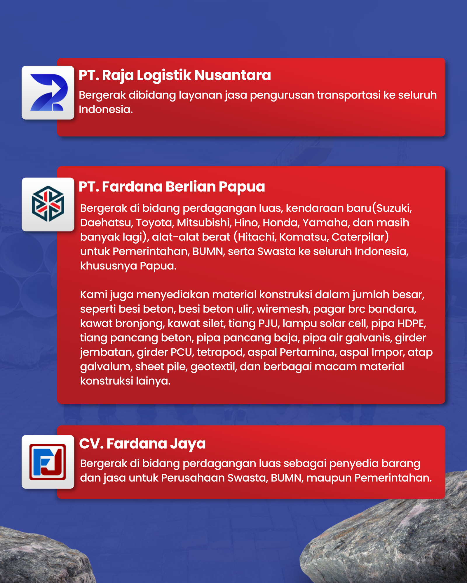 1. CV. Fardana Jaya, yang bergerak dibidang perdagangan luas sebagai penyedia barang dan jasa untuk perusahaan swasta, BUMN, maupun pemerintahan.